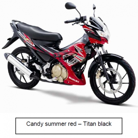Livery baru Satria FU yang hadir dalam 5 pilihan two tone warna sporty yaitu Brilliant white – Pearl flash green, Hyper pink – Titan black, Titan black – Metallic dark grey, Candy marine blue – Brilliant white, dan Candy summer red – Titan black ini harganya nggak berubah tetep 18,55 juta rupiah OTR Jakarta.